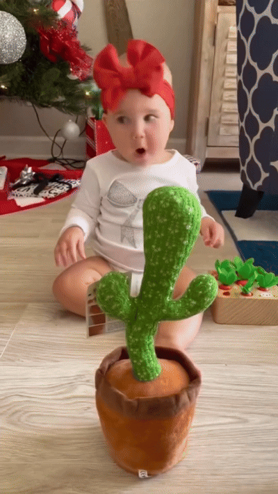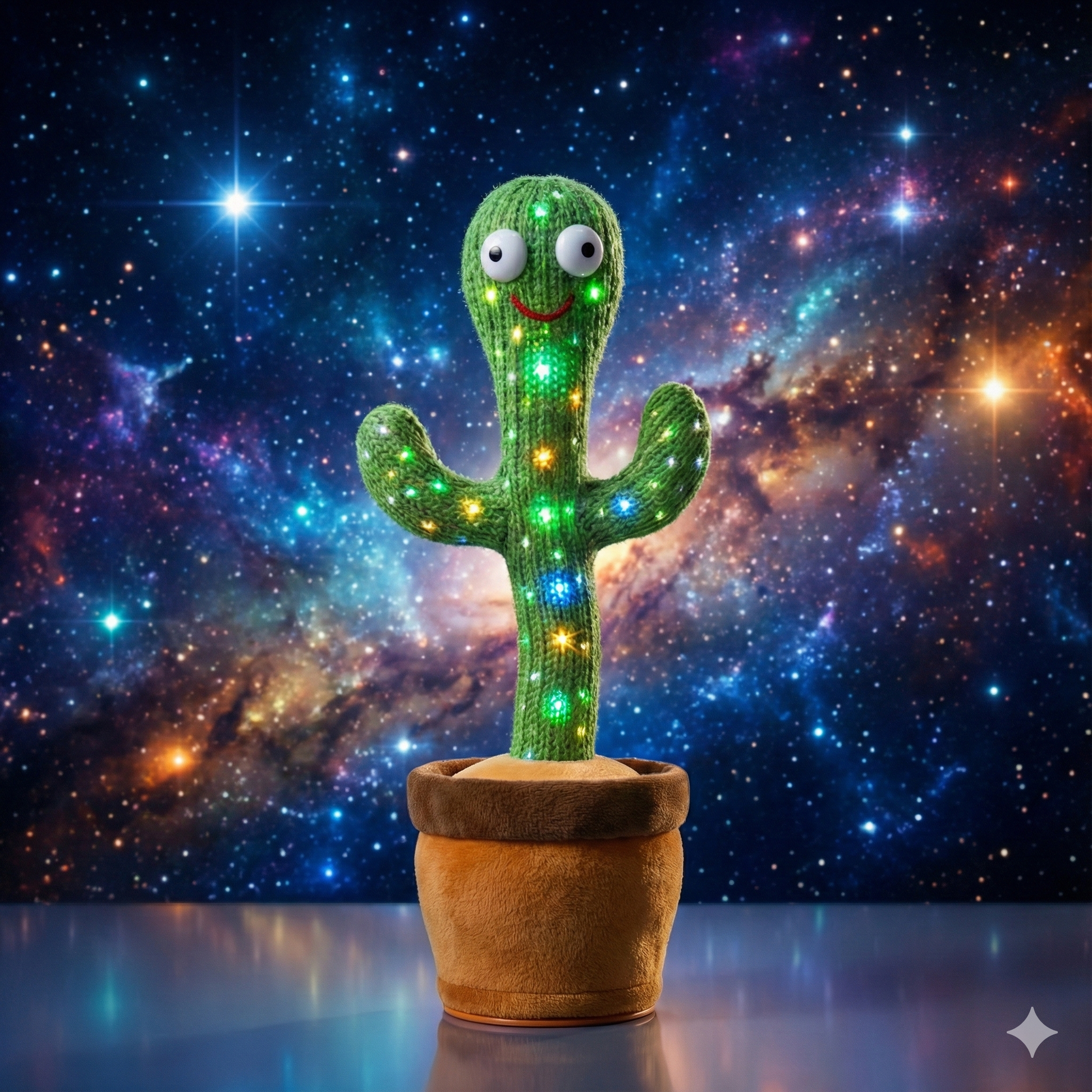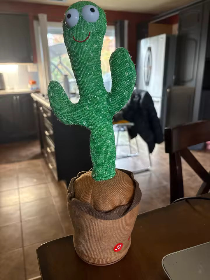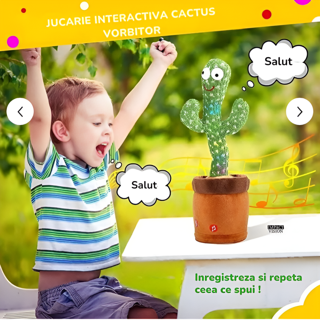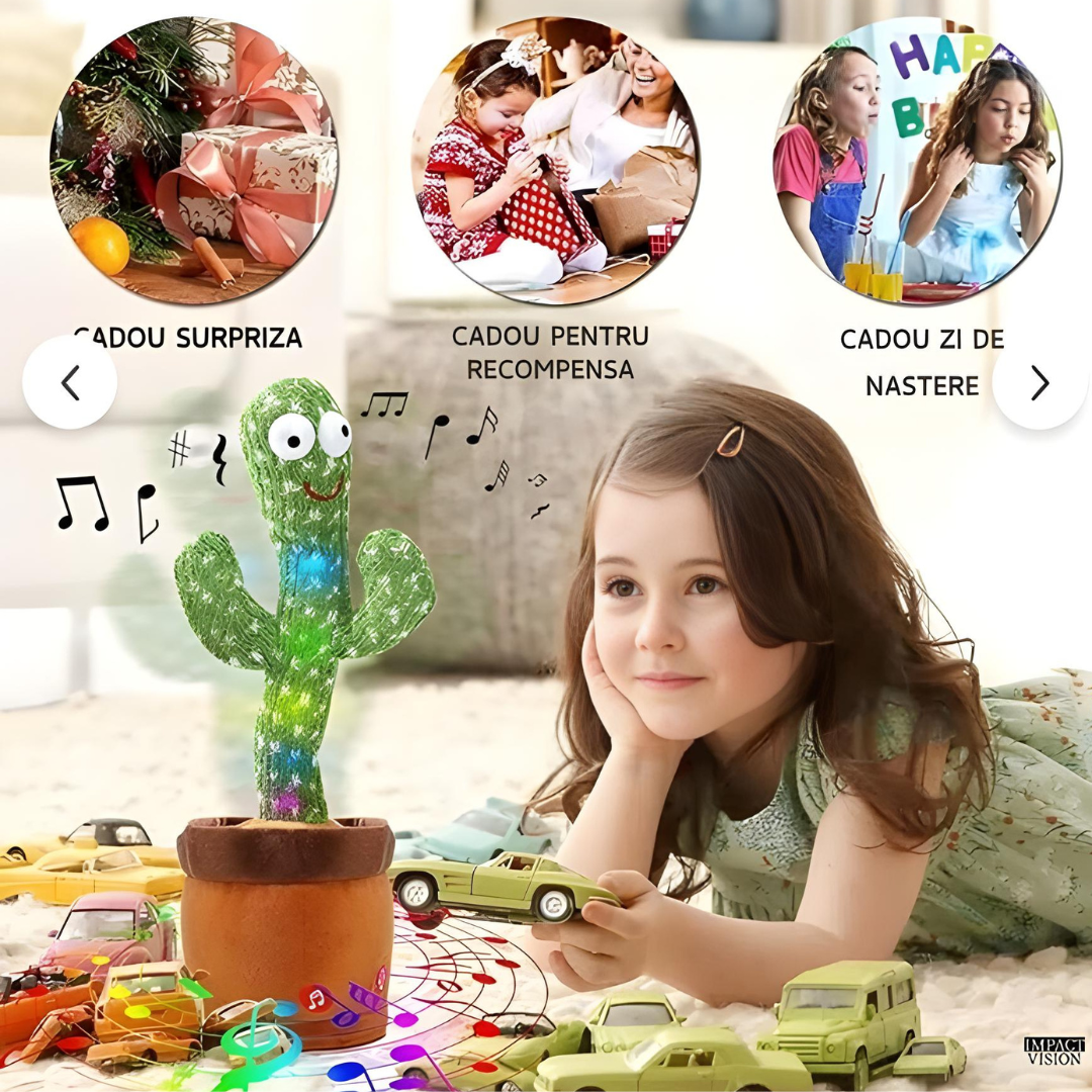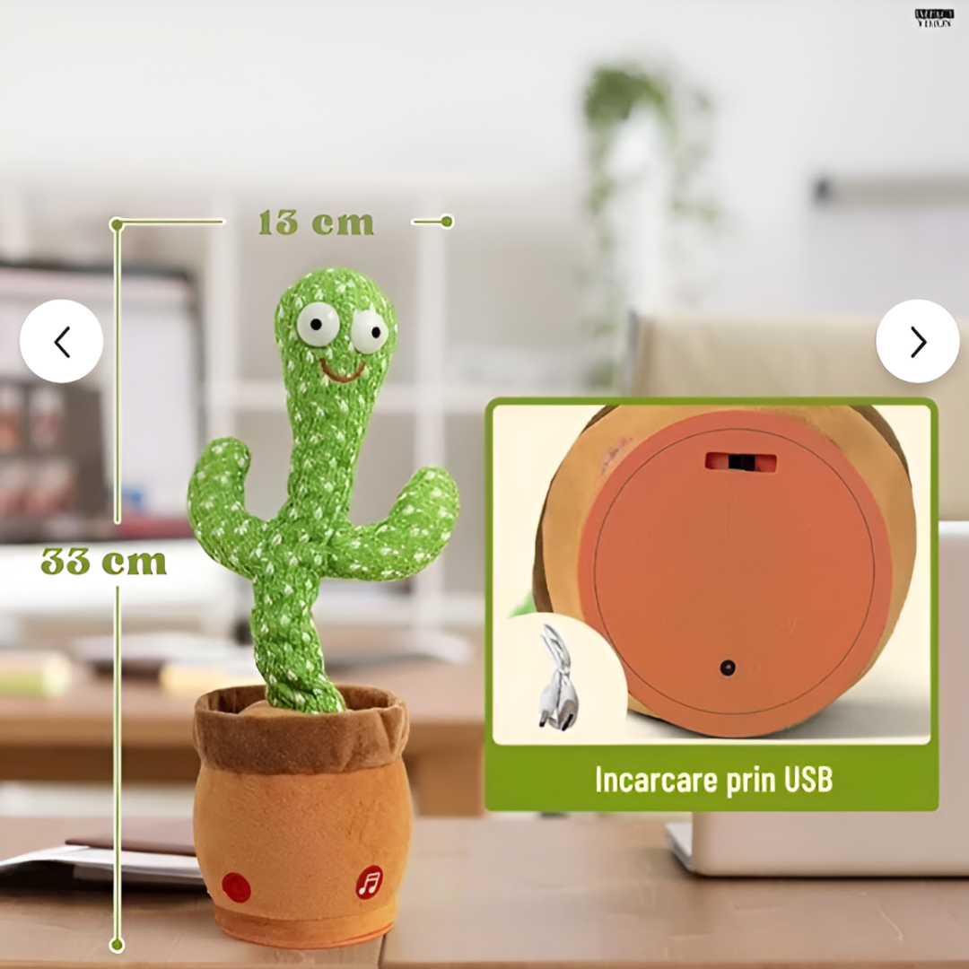 Mișcări sincronizate: Cactusul dansează în ritmul muzicii, însoțit de lumini LED intermitente – o atracție vizuală deosebită.